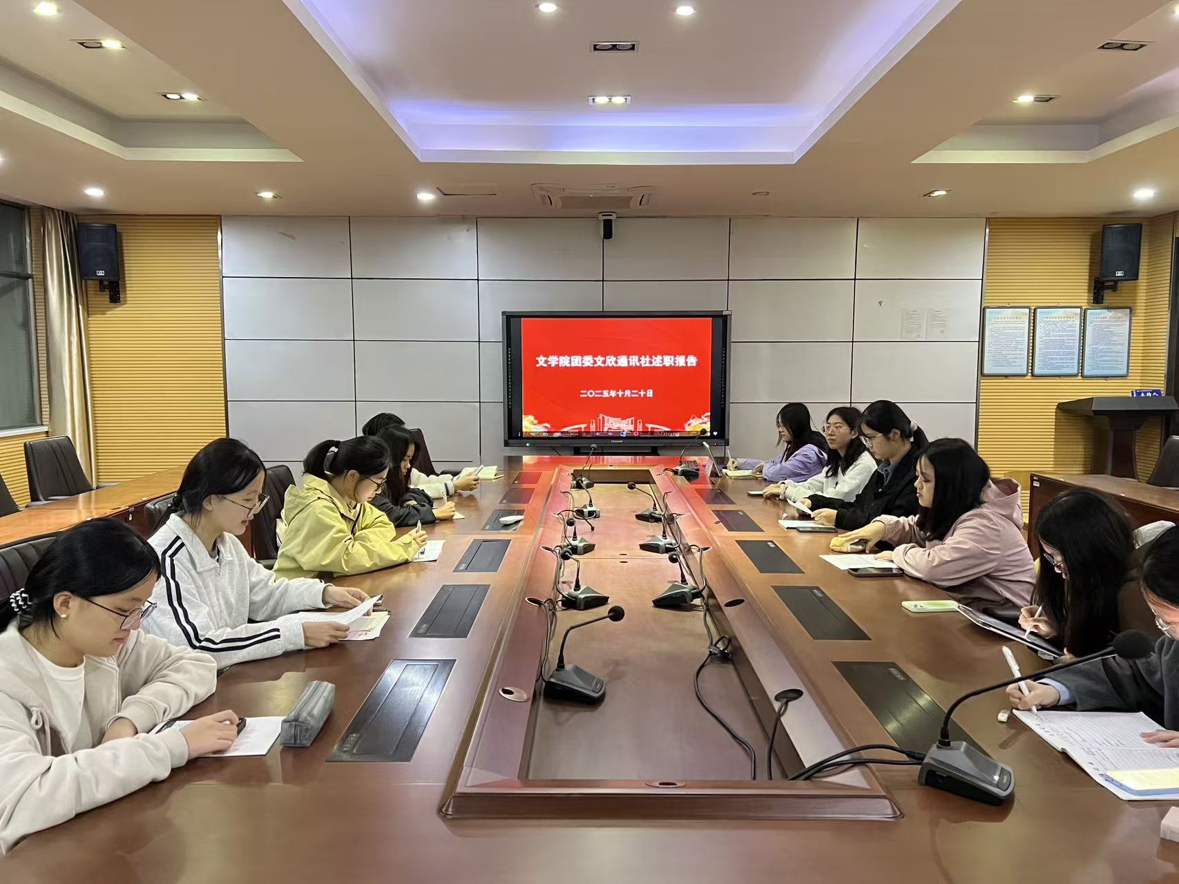 团委文欣通讯社于同日召开述职会议。文案部、视觉部、新媒体部与编辑部负责人分别就新闻采编、照片拍摄、平台运营与内容编校等工作进行汇报,总结成果并剖析不足。社长沈喆娴在总结中强调,各部门应不断提升内容质量与传播效能,共同推进学院宣传工作的发展。