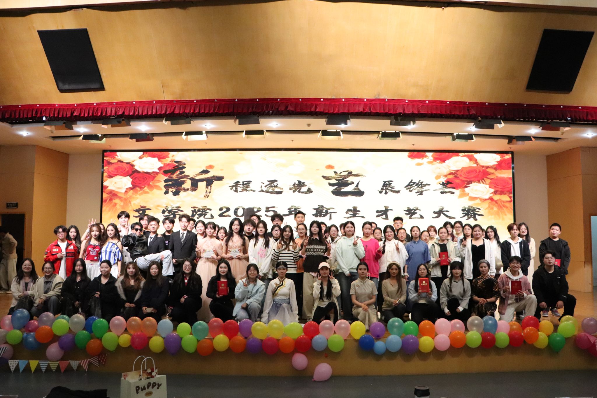 华灯初上夜,星光熠熠映礼堂;青春正当时,梦想扬帆启新程。11月16日晚,文学院在图书馆报告厅举行“新”程逐光,“艺”展锋芒——2025年新生才艺大赛。院党委副书记管婷婷,院团委书记许帆扬,25级新生班主任代表周文波、杨柳莅临现场并担任评委。各兄弟学院学生代表,文学院团委、学生会、自管会主要负责人出席本次活动。文学院25级全体新生观看比赛。活动由宿迁恒恒文化传媒有限公司赞助。
