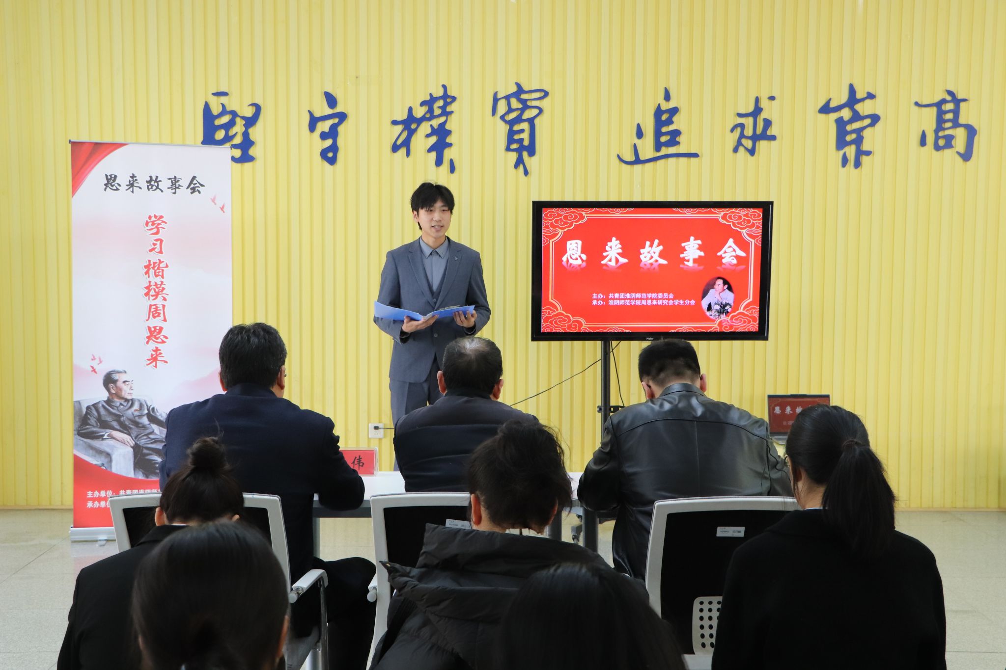 3月25日下午,淮阴师范学院2026年“恩来故事会”在长江路校区学生综合事务大厅如约开讲。本次活动由共青团淮阴师范学院委员会主办,校周恩来研究会学生分会承办。